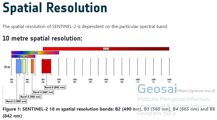Informasi ini dapat ditemukan dari website resmi dari masing-masing satelit. Gambar berikut menjelaskan tentang komposisi untuk kumpulan band Sentinel 2.